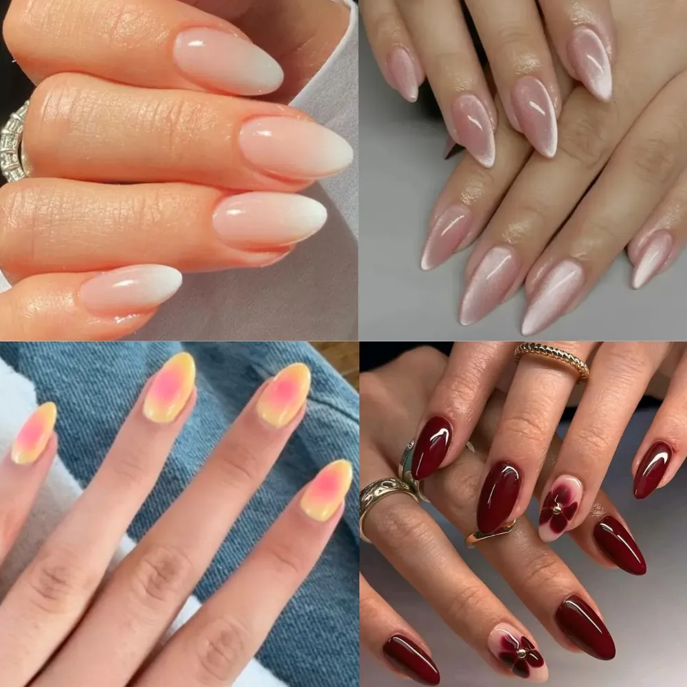 Cat eye, one color aura/airbrush, ombré, blooming gel design, 1-2 accent nails per hand