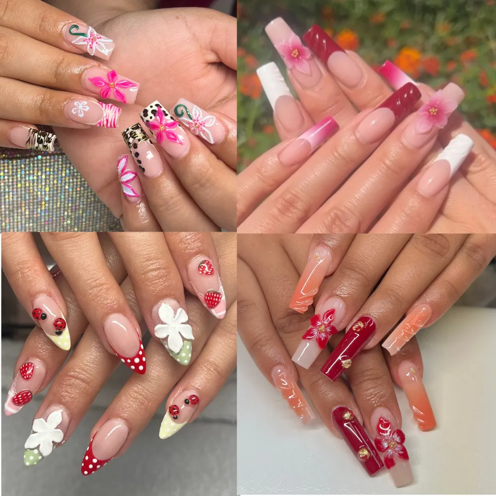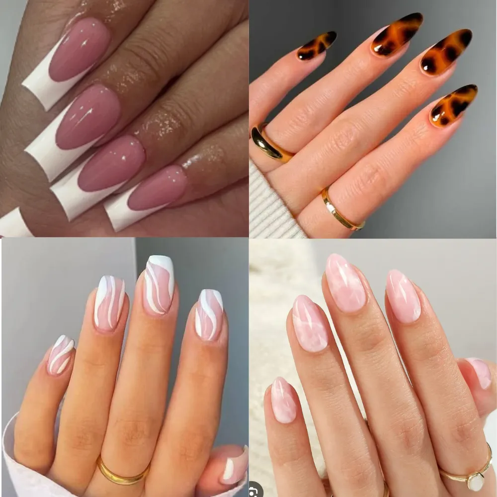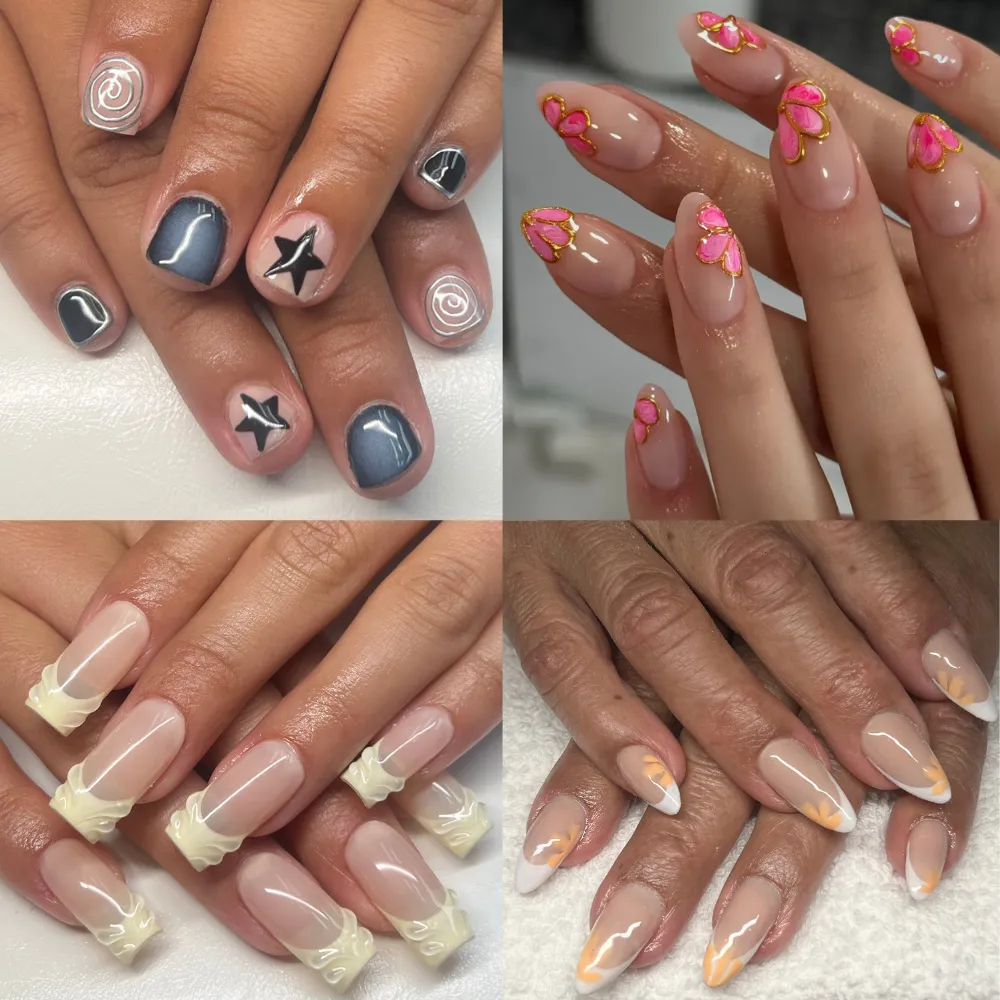 Any color French tip, marble, animal print, aura/airbrush with multiple colors, simple line work